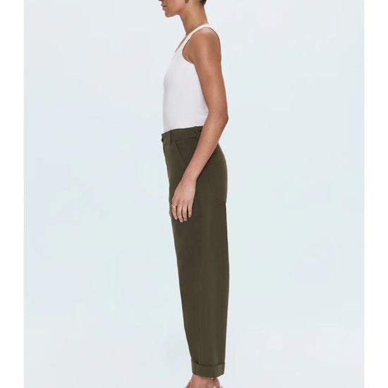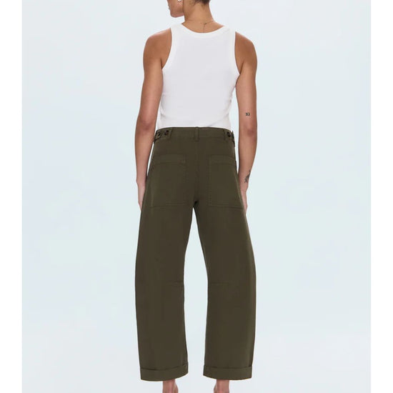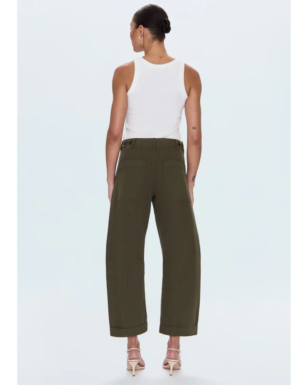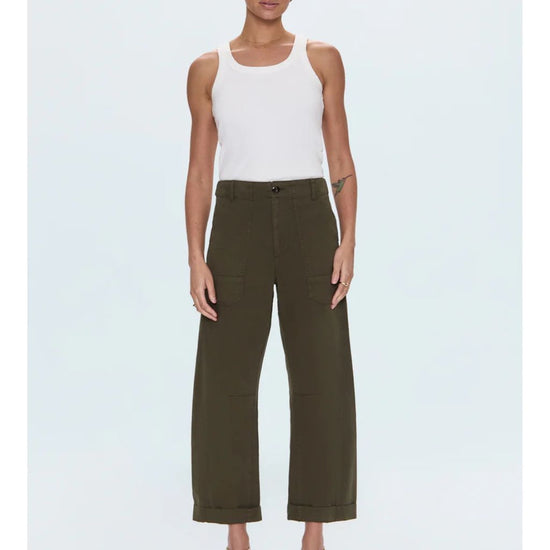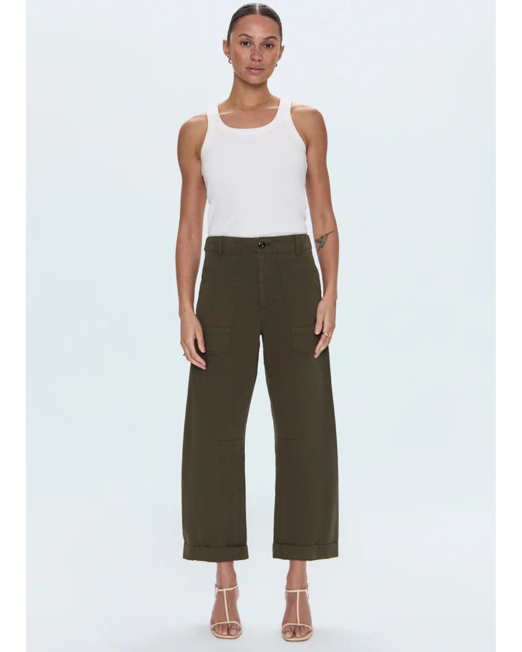 A utilitarian-inspired silhouette, Tori features our signature bowed leg, functional details, and a cropped 26 ½" inseam that hits at the ankle. Crafted from 100% cotton for structure and comfort, Sycamore brings understated sophistication in a deep olive tone that transitions effortlessly from day to night.