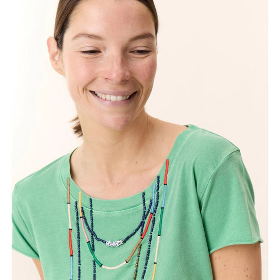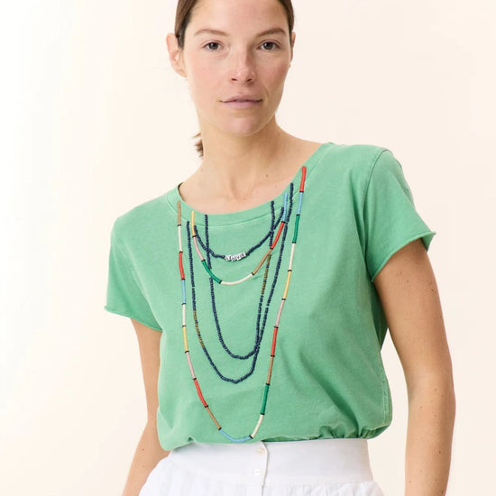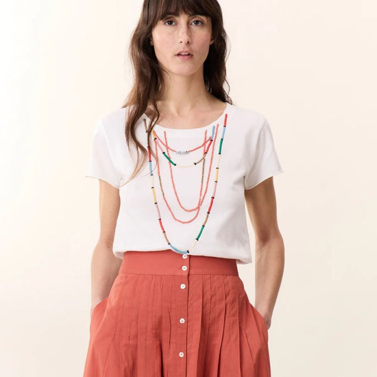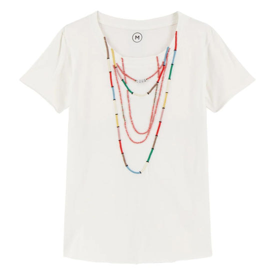 Bohemian and chic, the Toro Beads T-shirt can't help but turn heads with its dazzling beaded necklace print. The detail that makes the difference? Its contagiously happy style, infusing good vibes into the wardrobe of the Leon & Harper woman. Wear it with an oversized jacket, or alone for an effortless jewelry style look.
