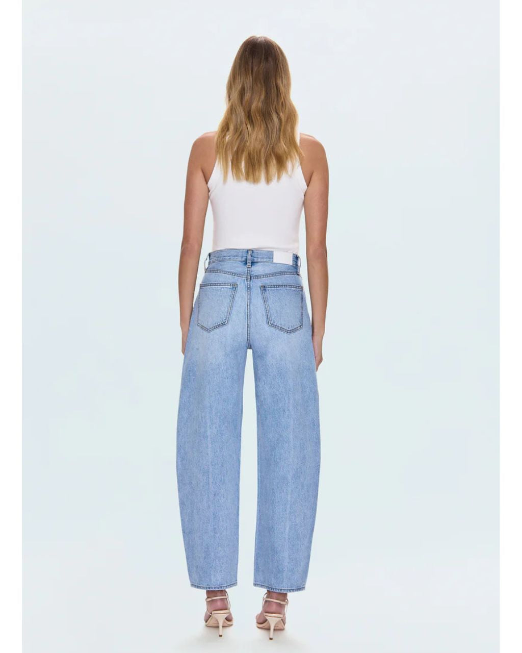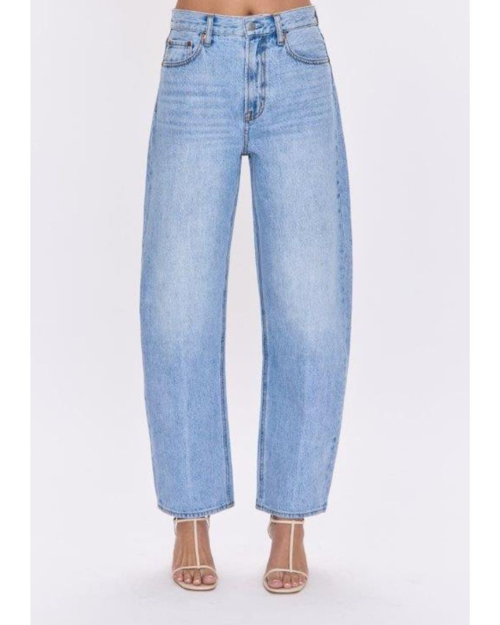Meet Wes, your new go-to for a modern, refined denim look. These jeans feature a flattering high-rise waist and a full-length 30" inseam, leading to a stylish barrel leg silhouette. Crafted from our premium rigid non-stretch denim, they provide an expert fit that truly holds its shape, ensuring a polished look all day long. With their clean hem finishes, the Wes offers a sophisticated take on classic denim. Gaze is a light, bright indigo wash that adds instant versatility to your wardrobe. Spectacle is a vintage inspired medium blue wash with moderate fading and free of distressing for polished, lived-in perfection.