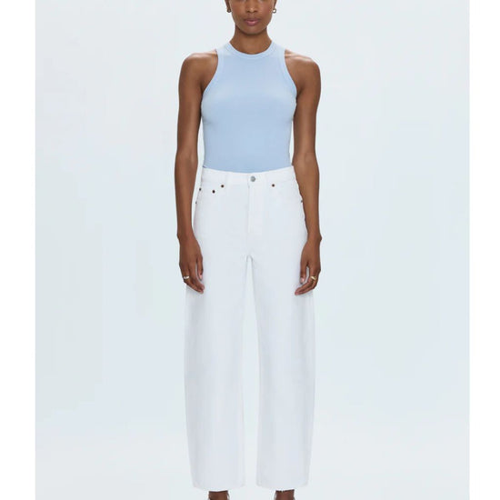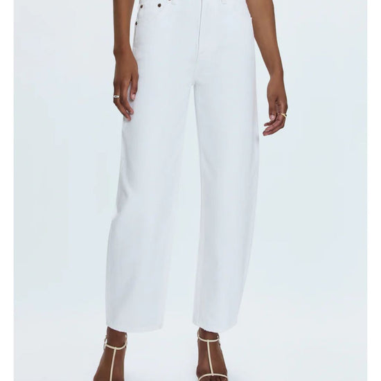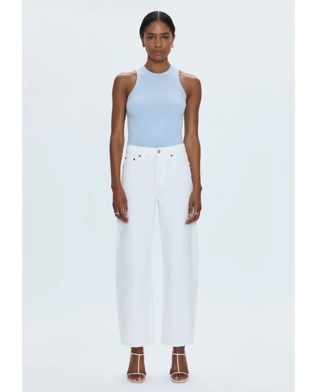 Classic Style, Modern Fit. These high-rise, full-length jeans in a crisp white wash offer a timeless silhouette with a modern twist. Crafted from rigid non-stretch denim, they’re designed to hold their shape and provide an expert fit.