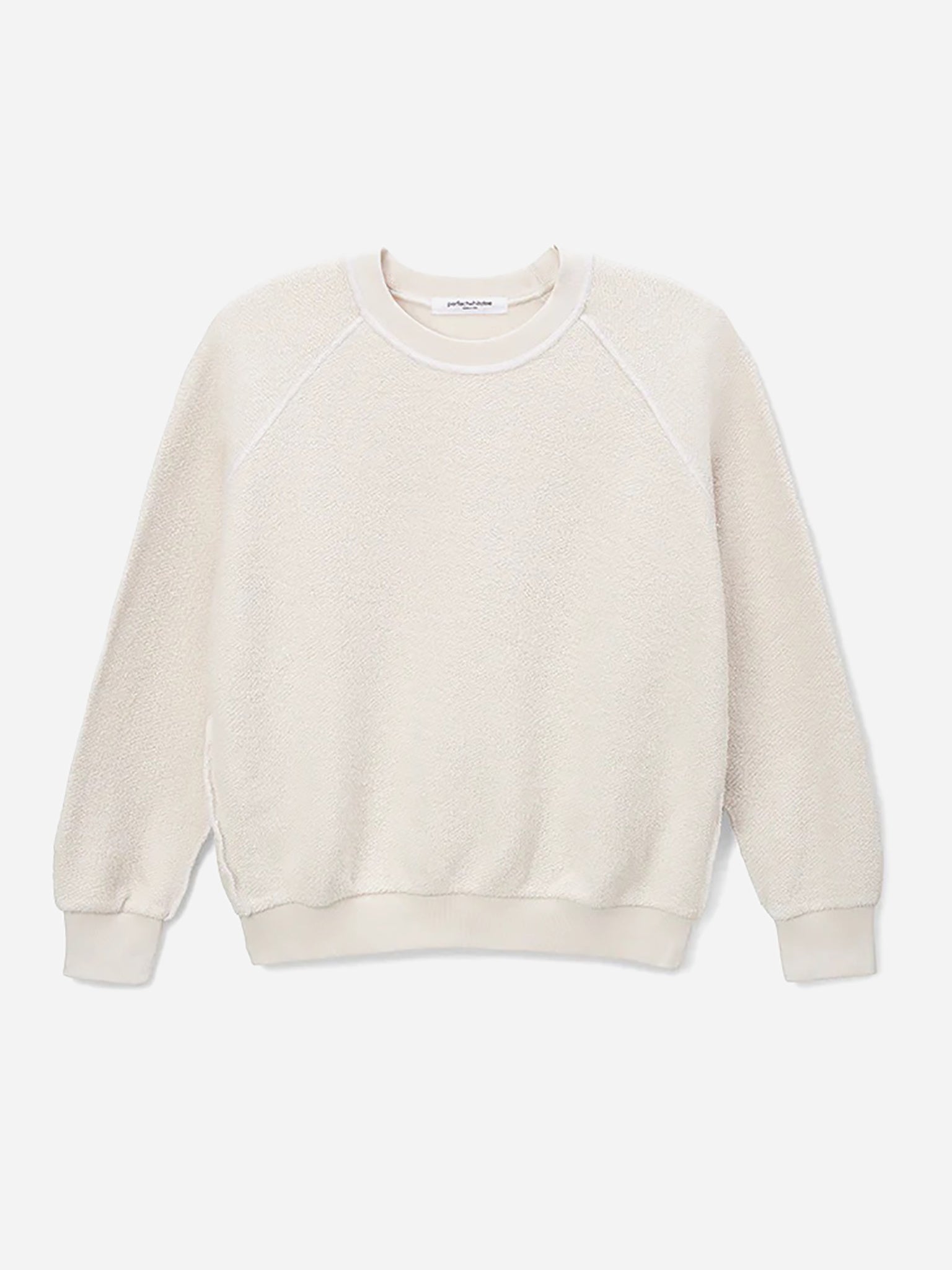 features: inside out cotton fleece; exposed raglan seaming.