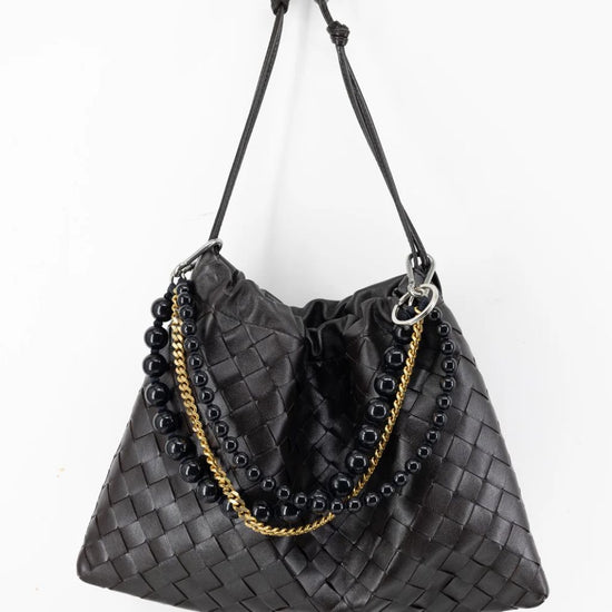 - Chains with 10mm and 16mm wooden beads and brass chain
